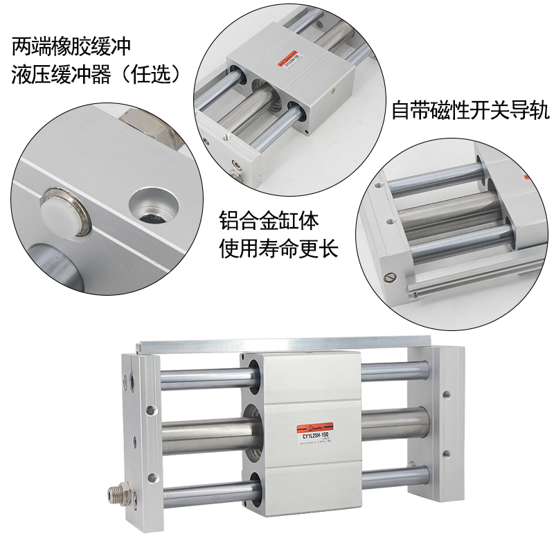 的另一組磁環(huán)作用。當(dāng)活塞在缸筒內(nèi)被氣壓推動(dòng)時(shí),則在磁力作用下,帶動(dòng)缸筒外的磁環(huán)套一起移動(dòng)。