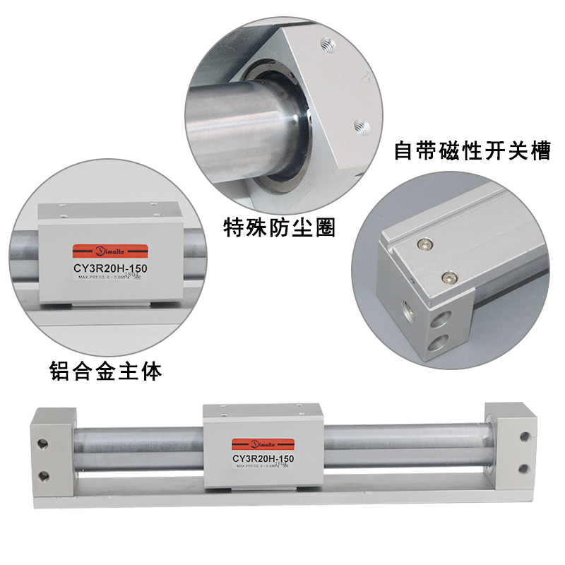 1、斯麥特生產的無桿氣缸CY3R材質使用鋁合金材質,耐腐蝕,使用壽命更長;