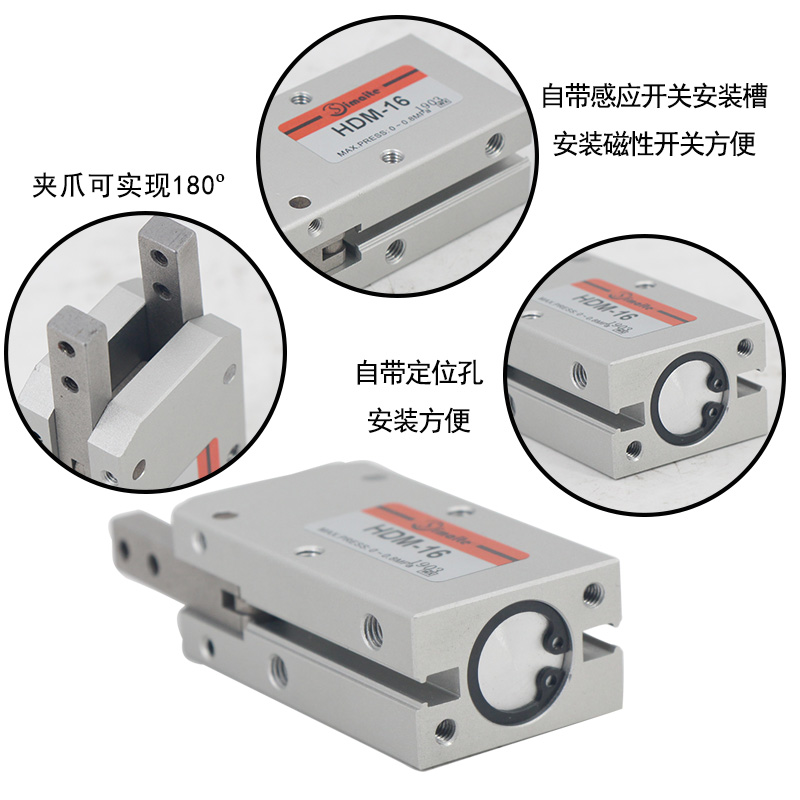 2、HDM手指氣缸夾爪可實現(xiàn)180º,該范圍內(nèi)的都可以夾取搬運(yùn);