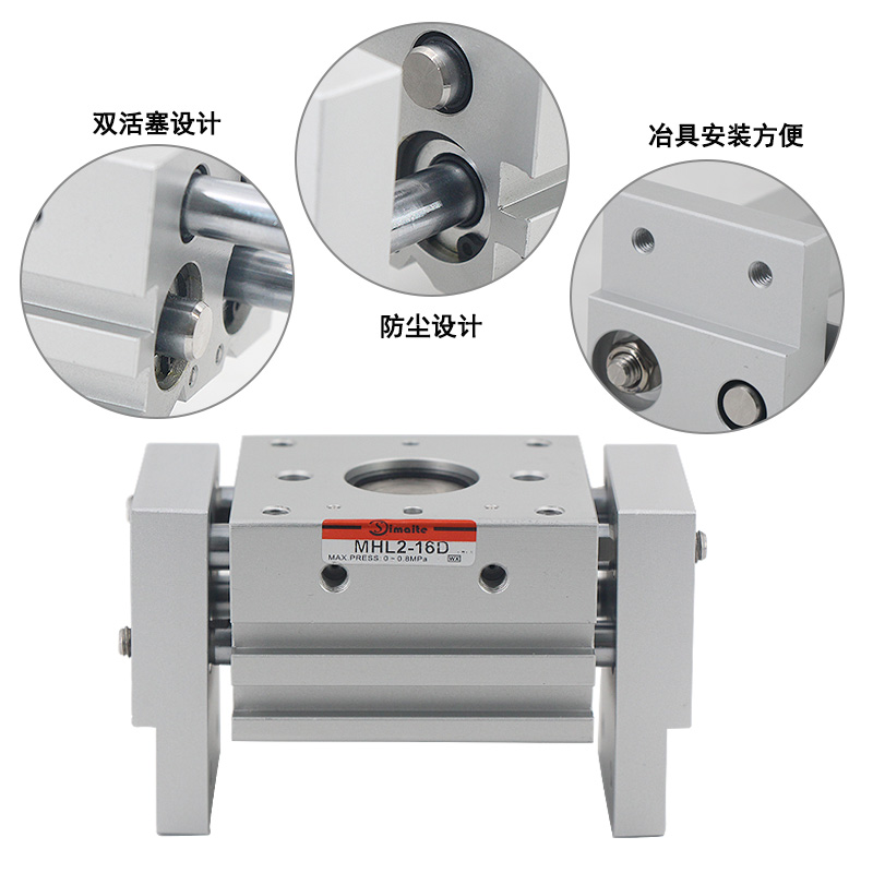 3、MHL2系列手指氣缸采用齒輪齒條操作,令手指能同步開閉,重復(fù)精度高;