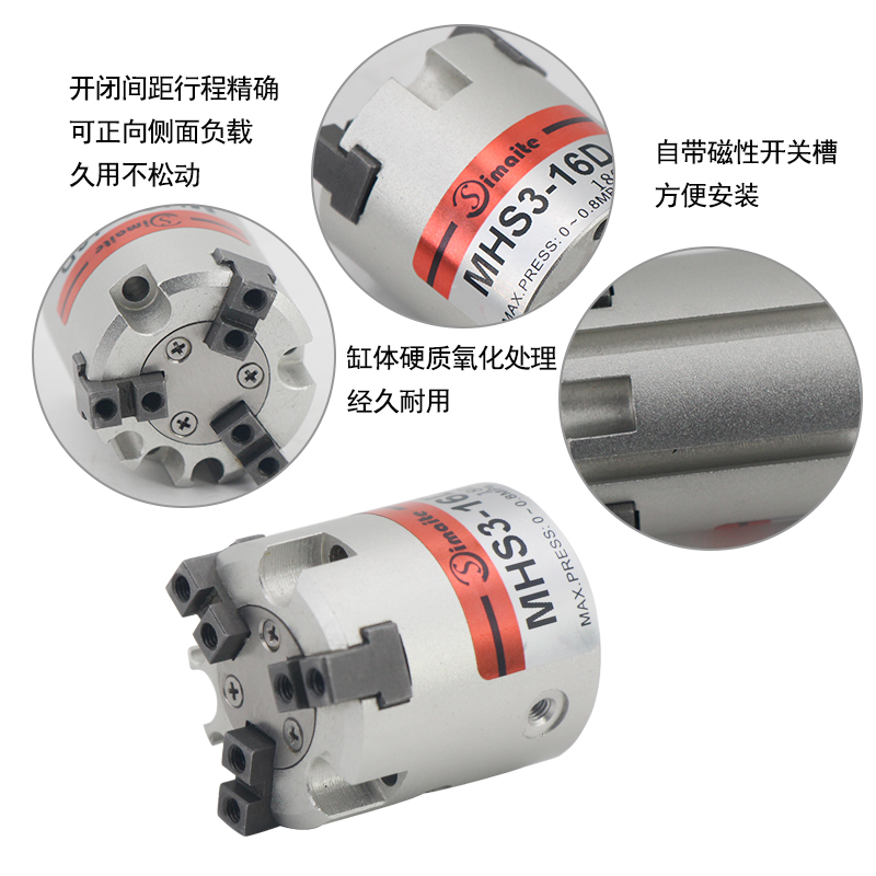 5、手指氣缸采用高精度密封,不漏氣。優(yōu)良密封件,滑動(dòng)順暢,不漏氣,不生銹。