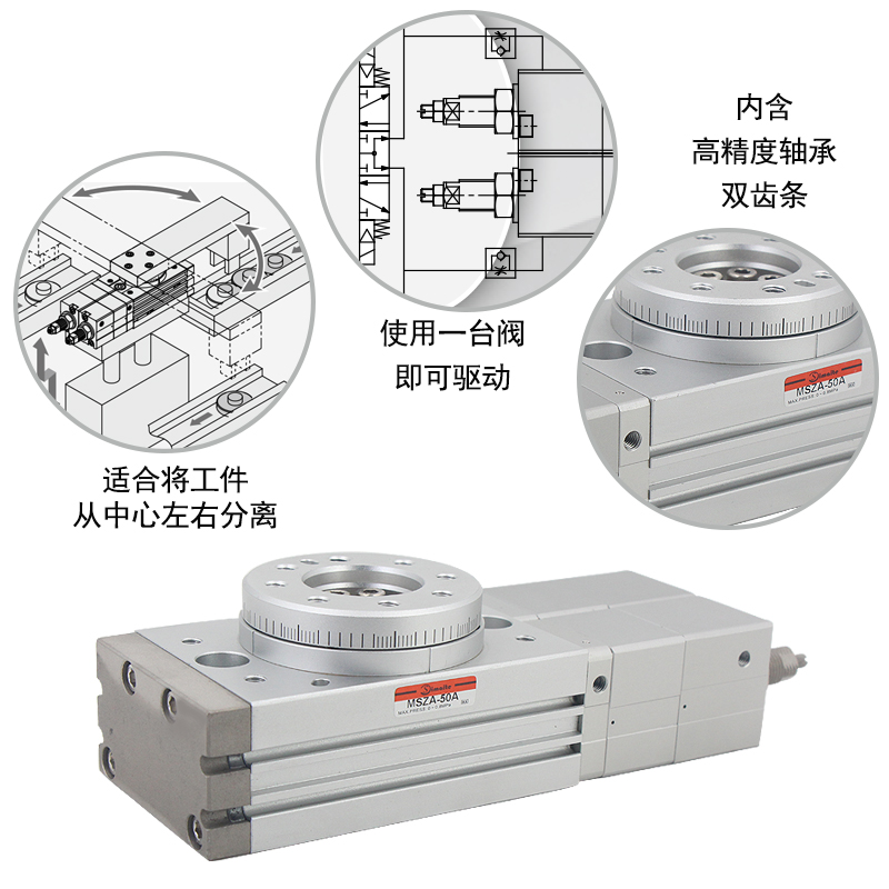 5、MSZA旋轉(zhuǎn)氣缸適合將工件從中心左右分離;