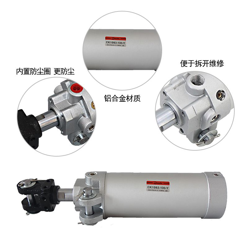 4、夾緊氣缸前端蓋帶銅套,耐磨性好;有兩種軸耳寬度16mm,20mm。內藏式速度調