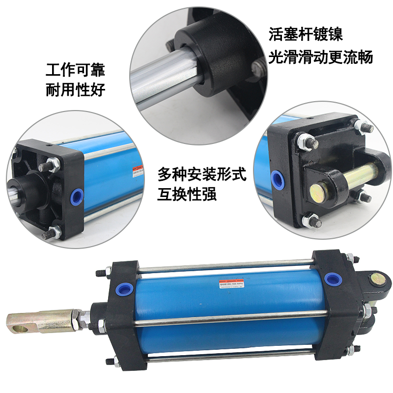 1.重型氣缸可免潤滑:采用含油粉末冶銅作軸心軸承,使活塞桿無需加油潤滑;