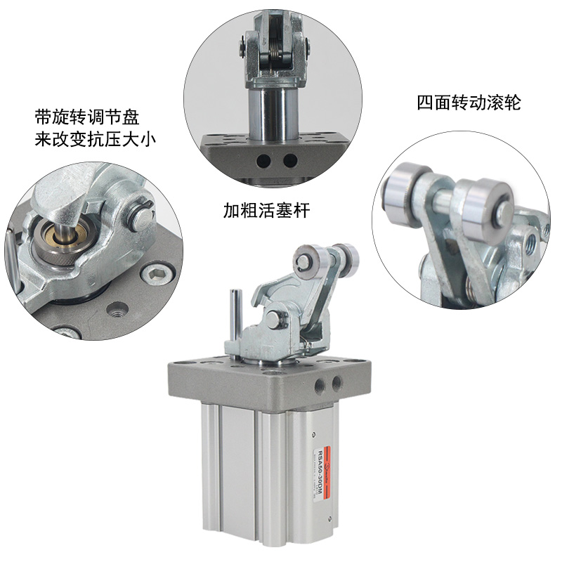 1、RSA系列阻擋氣缸是通過旋轉(zhuǎn)調(diào)節(jié)盤來改變內(nèi)置液壓緩沖器的抗力大??;