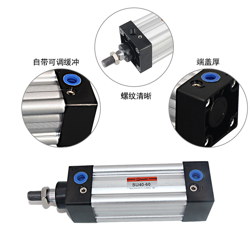 3、耐高溫性:SU標(biāo)準(zhǔn)氣缸采用耐高溫密封材料,使氣缸在150攝氏度,高溫條件下正常工作